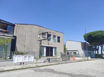 Affiancato alla via Emilia, l'immobile è composto da un locale di 117 mq alto 3,40 mt adibito al commercio al dettaglio. All'esterno è presente una corte di 250 mq in parte asfaltata.