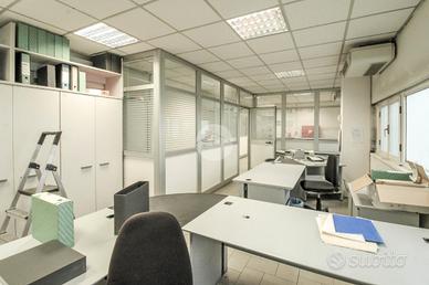 Il complesso proposto in vendita possiede una superficie totale di circa 2.450 metri quadrati interni, di cui 97 metri quadrati circa adibiti a magazzino e 806 metri quadrati ad ufficio, con annessa un'area esterna privata e recintata di circa 1.800 metri quadrati.