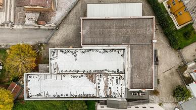 Il complesso gode di tutti gli impianti necessari quali riscaldamento e condizionamento, impiantistica elettrica, di videosorveglianza, d'illuminazione e d'allarme; dispone poi di un sistema antincendio composto da pompe antincendio, antincendio a pioggia e a idranti, porta tagliafuoco, rilevatori antincendio, luci e relativa uscita d'emergenza. Nella totalità la struttura possiede ben dieci servizi igienici privati distribuiti tra il piano terra e il piano primo, completi di area mensa, spazio adibito a spogliatoio e annesse docce. Esternamente gli immobili risultano godere di circa 1.800 metri quadrati di area esterna privata e recintata mediante cancello completo di tre accessi carrai e ulteriori tre passi carrai. La proprietà risulta possedere tetto in eternit ed essere in buono stato data la parziale ristrutturazione avvenuta quest'anno.