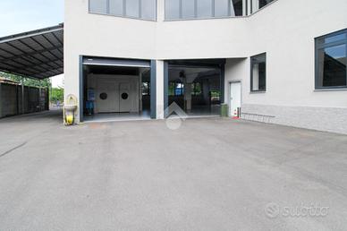La soluzione beneficia di circa 400 metri quadrati di area esterna esclusiva recintata con doppio accesso carraio; all'esterno del capannone sono invece reperibili circa una ventina di posti auto.