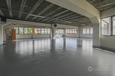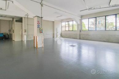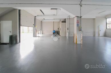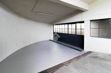 I tre piani di capannone - seminterrato, terra e primo - sono accessibili tramite rampe che conducono a portoni automatizzati di 4 metri di altezza ciascuno che si aprono su vasti openspace, interrotti solamente da alcuni pilastri portanti, aventi un'altezza massima di 4,5 metri (4 metri sotto trave).