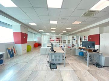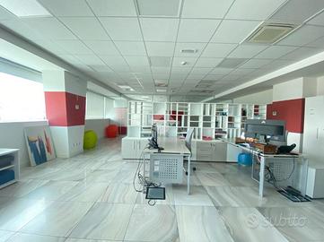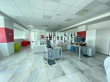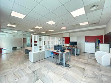 - palazzina uffici di circa 900 mq (oltre 300 mq di magazzino interrato) caratterizzati da finiture di pregio quali contosoffittatura, pavimentazione flottante, impianto ricircolo e condizionamento aria, illuminazione led, ampie superfici vetrate che garantiscono altissima luminosità.