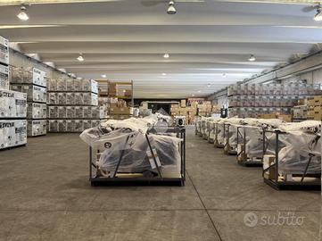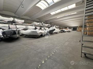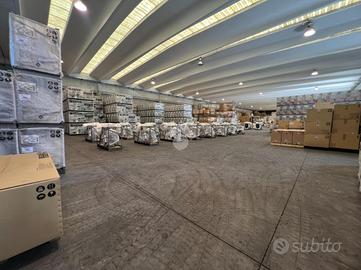 La soluzione, libera su quattro lati, misura circa 2000 mq disposti su due campate a pianta rettangolare, con un altezza interna di 6.00 metri. Le due porzioni sono direttamente comunicanti tra loro e sono dotate di sei ampi portoni di ingresso accessibili con tutti i mezzi di movimentazione.