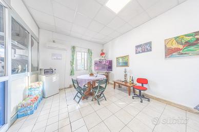 Gli spazi interni sono curati e perfettamente organizzati. L'immobile dispone di una sala d'attesa, un ufficio, un bagno per la clientela e un servizio dedicato ai dipendenti, oltre a un ampio magazzino interno ed esterno. Il controsoffitto è stato recentemente rifatto e l'immobile è dotato di impianto fotovoltaico, che contribuisce a ridurre i costi energetici.