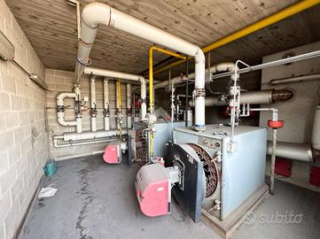 Complesso non in produzione attualmente, con impianti per produzione e terziario indipendenti, allacci utenze e cabine presenti, centrale termica, colonne e anello antincendio, area esterna di manovra con fondo asfaltato.