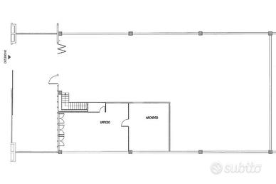 Gli uffici si sviluppano su due piani: al piano terra 65 metri quadrati e al piano primo 115 metri quadrati. L'immobile è inoltre completo di spogliatoi con un servizio igienico e tre docce.