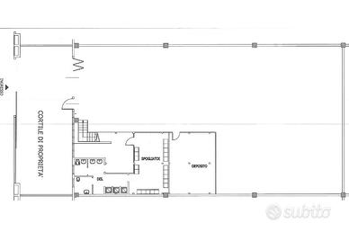 Il capannone misura complessivamente 630 metri quadrati, ha un'altezza interna di 7,80 metri ed è accessibile tramite un portone alto 4,30 metri. La zona adibita a capannone misura 450 metri quadrati, si sviluppa su un'unica campata ed è dotata di mensole.