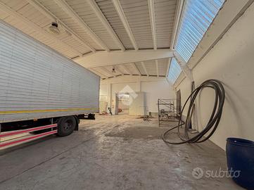 Il capannone misura circa 1.150 metri quadrati e presenta un'area esterna di circa 400 metri quadrati, di cui 100 metri quadrati sul fronte e 300 metri quadrati sul retro. La soluzione si sviluppa lungo un'unica campata ed è divisa in due locali; sono inoltre presenti due servizi igienici. L'immobile è alto 6,50 metri, con altezza sottotrave di 5,00 metri, presenta due passi carrai ed è accessibile tramite un portone alto 4,40 metri. La struttura ha una lunghezza pari a 75,00 metri e una larghezza di circa 15,00 metri. Il capannone è dotato dell'impianto elettrico, di quello di illuminazione e del sistema antincendio a idranti. È presente una copertura in eternit, messa in sicurezza tramite incapsulamento.