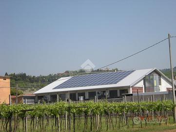 Completa la soluzione un piazzale privato di oltre 100 mq e, installato sul tetto, un impianto fotovoltaico con potenza di KW 19,20 e produzione annua di energia pari a KW 22.000,00 circa.