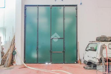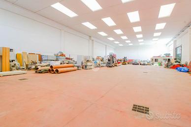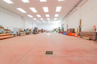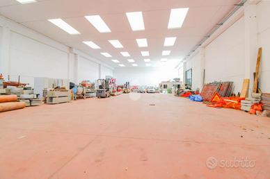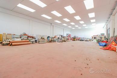 * Il pian terreno troviamo 1.100 metri quadrati di magazzino accessibili tramite un portone d'accesso di circa 4,5 metri che affaccia lungo un'unica campata, libera da pilastri, avente 7,8 metri di altezza (7 metri sotto trave). La campata che presenta una larghezza di 21,80 metri e una lunghezza di 48 è dotata inoltre di un servizio igienico privato con annesso spogliatoio e comode docce. Sempre su questo livello troviamo poi 65 metri quadrati adibiti a spazio direzionale dotato anch'esso di comodo servizio igienico privato;