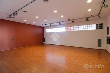 * Piano terra: La superficie di circa 950 metri quadrati è un open space con un'altezza interna di 7 metri, che consente un'ottima fruibilità per varie attività