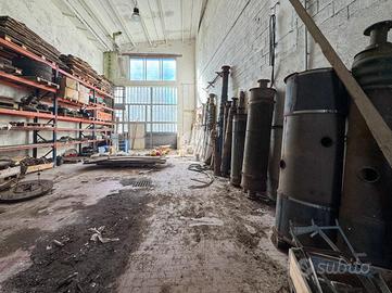 -Capannone 2 - 390 mq con altezza interna di 8 metri dotato di due portoni con le seguenti misure: larghezza 4,85 m e altezza 4,80 m (portone 1); larghezza 4,50 m e altezza 4,30 m (portone 2) luci e uscite d'emergenza; impianto elettrico e d'illuminazione da rivedere; spogliatoio/doccia;
