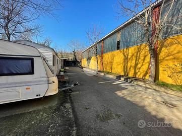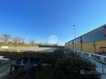 Zona esterna di circa 7.500 mq ca. con campo esterno da 2100 mq ca., giostra cavalli, 30 box in muratura con due sellerie, area roulotte per dipendenti, tettoia stoccaggio fieno e attrezzi.