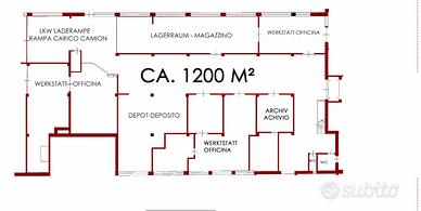 Capannone artigianale in vendita nel Burgraviato Capannone artigianale di 1.200 m² situato al piano seminterrato, disponibile immediatamente in vendita. L'immobile si trova nel territorio comunale di Postal (Burgstall) ed è dotato di rampa di carico per camion nonché di numerosi locali accessori e magazzini. La facciata finestrata garantisce luce naturale e aerazione. Il riscaldamento è assicurato da un impianto a cippato, economico ed efficiente, che garantisce un ambiente caldo e confortevole durante i mesi invernali. Tutte le pareti divisorie non sono portanti e possono essere rimosse integralmente. La superficie complessiva è di circa 1.200 m² (dato non vincolante). In occasione di un sopralluogo, la superficie potrà naturalmente essere verificata. L'accesso è idoneo a furgoni e trattori stradali. La consegna può avvenire immediatamente.