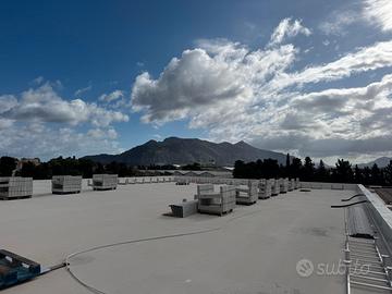 In vendita a Palermo, in Viale Aiace (tra Partanna Mondello e Tommaso Natale), proponiamo una struttura che si sviluppa su due livelli per utilizzo industriale-commerciale con categoria D/1 di 1.140 mq complessivi , con ampia area esterna di circa 1.400 mq, dotata di doppio ingresso carrabile e ingresso pedonale. L'immobile si trova in una zona industriale strategica, a pochi chilometri dallo svincolo autostradale, che consente spostamenti rapidi verso tutte le direzioni. La posizione e la conformazione rendono il capannone facilmente accessibile anche a automezzi di grandi dimensioni, grazie alle ampie altezze interne (4,30 m al piano terra) e ai portoni sezionali motorizzati (apertura 5 m, altezza utile 3,70 m). Il piano terra, di circa 570 mq, è composto da un grande ambiente unico con pilastri portanti e scala interna che collega il livello superiore. Questo spazio, versatile e luminoso, si presta a funzioni produttive, di deposito o logisticha. Il piano primo, anch'esso di 570 mq, ospita un ampio open space di circa 340 mq, sei uffici, due archivi, quattro bagni, spogliatoio, ripostiglio e corridoio. L'accesso può avvenire sia dalla scala interna che da un ingresso indipendente, ideale per separare aree operative e direzionali, dotato di ampie finestrature che danno luminosità e aria a tutto il piano. L'intero edificio è stato completamente ristrutturato con interventi strutturali e impiantistici di alto livello, mirati a garantire funzionalità, sicurezza e risparmio energetico. La facciata ventilata tipo Abet Meg conferisce all'immobile un aspetto moderno e migliora l'efficienza termica e acustica. Tutti gli infissi e portoni sezionali sono nuovi, motorizzati e coibentati, offrendo comfort e praticità. Gli ambienti interni sono serviti da rete dati e Wi-Fi, impianto elettrico nuovo e certificato, illuminazione a LED e predisposizione per dieci climatizzatori, con tubazioni frigorifere, scarico condensa canalizzato e impianto elettrico dedicato per una gesti