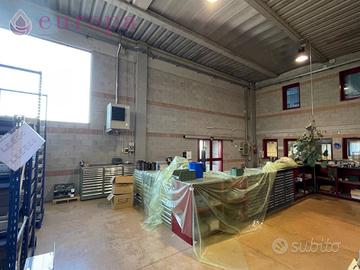 In un'eccellente posizione super strategica della zona industriale, a diretto accesso autostradale e con ampi spazi di manovra per grandi automezzi, capannone del 1994 artigianale/industriale su lotto di 2079mq completamente recintato, dotato di ampio piazzale uso parcheggio e manovra (eventualmente parzialmente copribile con tettoia), composto da una superficie coperta di circa 700mq, così suddivisi: al piano terra ampio magazzino/area produttiva di 427mq, con accesso diretto per area vendita clienti e portone per carico/scarico automezzi. È composto da in una grande area unica avente 6m di altezza, completamente attrezzata con scaffalatura seminuova in acciaio ad uso magazzino disposta su due piani e bancone vendita al dettaglio, più ripostiglio e area tecnica. Gli uffici completano il piano terra per una superficie di 135mq rifiniti ed attrezzati pronti all'uso con arredamento completo, suddivisi a moduli modificabili, cablati di ogni linea tecnica compreso server aziendale. Sono dotati di accesso diretto frontale principale per personale/clienti ed uno retrostante diretto all'area produttiva. Si compongono di reception e sala d'attesa, doppi servizi affiancati, un cucinino per i dipendenti, un ripostiglio e 4 uffici dedicati. Proseguendo al piano primo, troviamo altri 135mq di uffici suddivisi in corridoio, grande sala riunioni, un bagno e 4 uffici modulari. Riscaldamento e raffrescamento dedicato per gli uffici tramite caldaia tradizionale e termoconvettori, mentre per l'area produttiva vi è un sistema dedicato separato. Tetto rifatto.