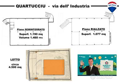 Capannone industriale/commerciale in vendita - Lotto di 4.500 mq - Categoria catastale D8 A poca distanza dalla Ss.125 e dalla Ss.554, proponiamo un'interessante opportunità per chi cerca spazi ampi, funzionali e in un contesto dove costruire è possibile ma non scontato: siamo infatti in una zona industriale già urbanizzata, con oneri di lottizzazione assolti e con presenza consolidata di aziende, officine, centri logistici e rivendite note. La zona industriale si chiama "Pill'è Matta" e la via dell'immobile è via dell'Industria. ? Il lotto misura circa 4.500 mq ed è già stato edificato con un fabbricato su due livelli, pensato per svilupparsi su un complesso di tre. Attualmente il piano seminterrato è completamente realizzato, è finestrato ed ha accesso tramite due comode rampe camionabili, e due scale esterne, altezza interna 4,5 metri, due locali di sgombero ad uso ufficio, un bagno e antibagno, oltre all'esterno a piccoli locali con un generatore ausiliario indipendente ed un'impianto antincendio a sprinkler già installato e conforme, già a servizio dell'immobile. Il piano rialzato, anch'esso già edificato con solida struttura prefabbricata in cemento, copertura completata con travi prefabbricate, è ancora da tramezzare e da completare a seconda delle esigenze del futuro acquirente (showroom, uffici, esposizione, magazzino, produzione o vendita). ? L'immobile è ideale per chi desidera personalizzare gli spazi su misura, senza dover affrontare le incertezze e i tempi lunghi di una nuova concessione edilizia. Un'opportunità perfetta per imprenditori, artigiani strutturati, operatori commerciali e investitori immobiliari. ?Contesto strategico: adiacente alla Ss.125; a due minuti dalla Ss.554; Vicinato industriale/commerciale già attivo; Presenza di numerosi capannoni, concessionarie, centri meccanici e commerciali. Opportunità unica per chi cerca spazi da modellare in base alle proprie esigenze. x info Roberto Puddu Agente Immobiliare