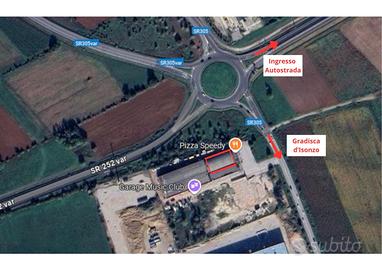 Gradisca d'Isonzo, in posizione assolutamente strategica direttamente sulla rotonda d'ingresso autostradale, offriamo in locazione capannone di 670 mq con copertura in alluminio coibentato.