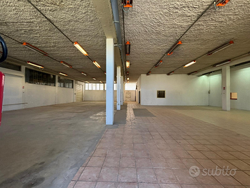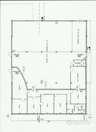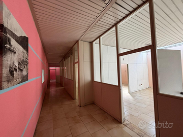 ed una porzione di circa 120 mq che ospita uffici, sono presenti diversi bagni ed accessi sia