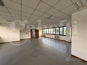 - Corpo uffici di complessivi 350 mq di cui 170 mq al piano terra e soppalco e 180 mq al piano primo, climatizzati, con impanto elettrico, rete dati, predisposizione antifurto e bagni dedicati. Uffici ideali anche ad uso showroom.