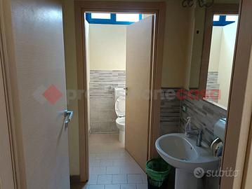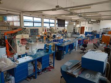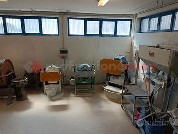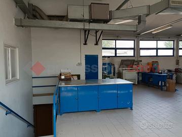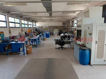 L'immobile è composto da mq 300 di laboratorio al piano rialzato con una altezza interna di 5 metri e da 50 mq di uffici e servizi igienici e di mq 350 di magazzino con servizi al piano seminterrato con una altezza massima di 3,20 metri.
