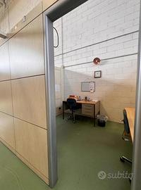 Internamente l'immobile è composto da un ampio open space con altezza di 10 metri, tre postazioni per uffici mobili, cucina, due servizi con doccia e spogliatoio. È dotato di impianto elettrico completo con blindo sbarra, 320 volt oltre a 220 volt, impianto antincendio con pozzetto acqua attivo, riscaldamento a gas con sistema ad irraggiamento, scala esterna con accesso al tetto tramite cortile di servizio e predisposizione impianto antifurto.