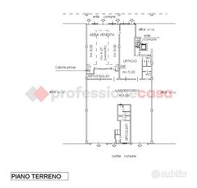 latero/cemento e finiture in pannelli prefabbricati) e lo stato di conservazione esterno dell'immobile appare discreto, come pure il livello di finiture. Internamente si compone di ampio spazio espositivo con vetrine fronte strada, una zona ufficio e servizi con annessa sul retro un'ampia area laboratorio con altezza di circa 9 mt. Completa di locali spogliatoio e servizio personale.