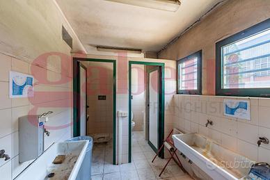 Attualmente l'edificio risulta diviso internamente in due unità comunicanti tramite un'apertura larga 4 mt; la prima di circa 1000 mq destinata esclusivamente alla produzione mentre la seconda di circa 450 mq è destinata a magazzino/produzione, uffici e servizi/spogliatoi.