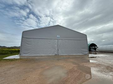 Vendo capannone mobile con tetto a doppia falda e colonne verticali, struttura solida e spaziosa.