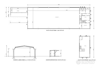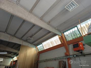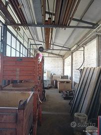Il capannone di 900 metri (600 per officina più uffici+servizi+spogliatoi+deposito esterno) è alto 7 metri, 6 sottotrave, campata unica, tetto rifatto nuovo nel 2017 (no eternit).