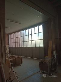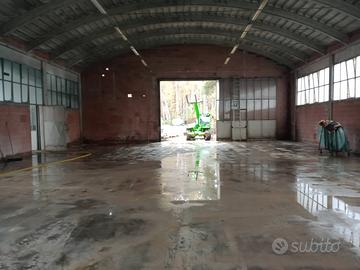 2 Capannoni catastalmente indipendenti e continui.Area complessiva 2000 m2 e più di 700m2 (400+300+extra spazio) di superficie coperta calpestabile. Tetto nuovo (2015) in alluminio coibentato, 5 e 6 metri. Pavimento industriale a blocchi areati. Presente illuminazione e impianto elettrico 380 V 4 kW e collettore aria compressa. 2 bagni.