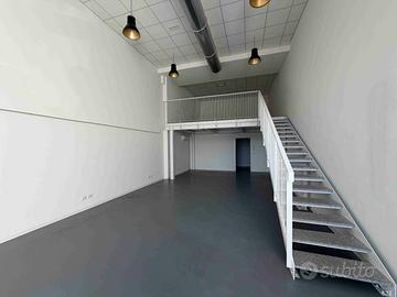 Recentissimo, ufficio/negozio con vetrina e parcheggi, collocato a pochi passi dalla passeggiata del lungo fiume, composto da ampio vano al piano terra di mq. 105 con bagno e ripostiglio, oltre a soppalco di mq. 35. Impianti domotici. Ottime condizioni e finiture. Nessuna spesa condominiale. Canone di locazione comprensivo di IVA.