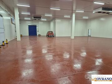 L'area produttiva si sviluppa su un capannone industriale di circa 1.800 mq con un'altezza interna di 8 metri. Al suo interno sono state realizzate due celle frigorifere di ultima generazione, ciascuna di 600 mq con altezza di 5 metri, dotate di impianto di refrigerazione a espansione diretta. A completamento, una spaziosa anticella di 600 mq e una zona carico/scarico refrigerata di 150 mq, anch'essa servita da impianti all'avanguardia. Tutti i sistemi di refrigerazione assicurano condizioni stabili di media temperatura (-10 °C / +4,5 °C), ideali per conservazione e logistica di prodotti alimentari o farmaceutici.