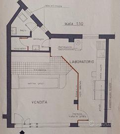L'immobile è composto da una sala di circa27,65 mq, locale ad uso laboratorio di 19,97 mq, antibagno di 2,31 mq e bagno di 3,15mq.