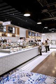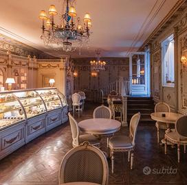 Al piano terra di mq 100 c. a, troviamo 20 coperti c. a. ed un meraviglioso bancone sapientemente attrezzato con vetrine espositive per la zona caffetteria, gastronomia e gelateria, che funge da cornice a questa location fortemente amata dai suoi innumerevoli clienti.