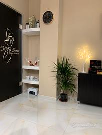 55 mq con sala d'attesa, reception e salottino, 4 cabine di cui una dedicata al fitness, una zona nail, bagno ed antibagno, impianto di