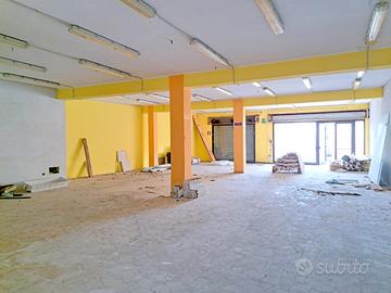 In zona centrale, a pochi minuti dai principali servizi, si propone locale commerciale al piano terra con ampie vetrate su strada, composto da vano adibito ad area vendita, ripostiglio e due servizi igienici.