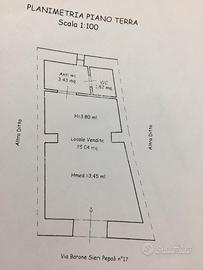 Il locale è composto da un vano unico + w.c., presenta una vetrina su strada e la predisposizione per l'impianto di climatizzazione a pompe caldo/freddo.