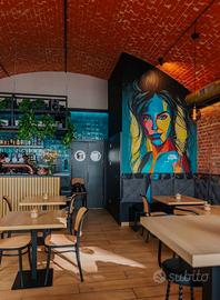 All'interno abbiamo 10 coperti c.a ed un imponente bancone con