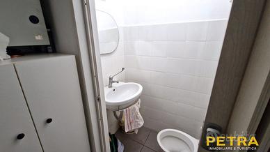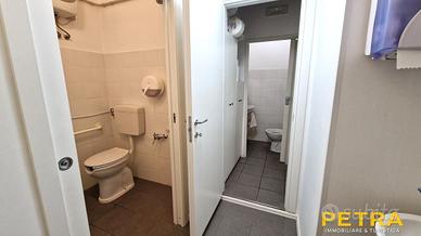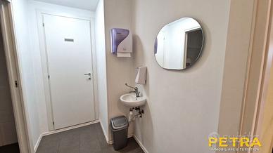 Il locale è dotato di due bagni: uno per il pubblico, attrezzato per persone con disabilità, e uno ad uso personale o di servizio. È presente anche la lama d'aria all'ingresso, con due unità installate, utile per la climatizzazione e per mantenere un maggiore comfort interno. La potenza elettrica disponibile è di 30 kW.