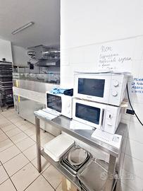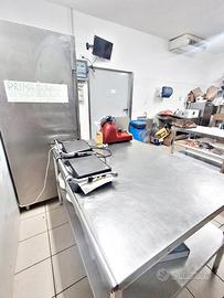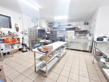 La cucina è completamente attrezzata e dispone di forno per pizza, fuochi, impastatrice, friggitrice e forno per spiedo, rendendo possibile l'ampliamento dell'offerta con pizzeria al taglio e d'asporto, hamburgeria e rosticceria.