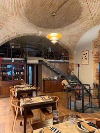 Le volte in mattoncini e la sapiente illuminazione rendono il locale un luogo dall'atmosfera calda e autentica, perfetto per offrire un'esperienza gastronomica di alto livello.
