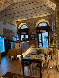 Il locale si distingue per il suo stile unico, con suggestive volte in mattoncini a vista, pavimenti in legno e un'atmosfera calda e accogliente, perfetta per attività di ristorazione, bistrot, enoteca o cocktail bar.