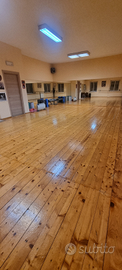 Sala ballo 70mq. Spogliatoi maschili e femminili con docce e bagni, due sale d'attesa, un ripostiglio, uno studio per direzione, due locali ed un garage interno.
