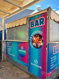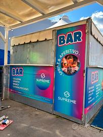 Chiosco bar apribile su tutti e quattro i lati: 3,14 m x 3,14 comprensivo di pavimentazione e rivestimento interno.