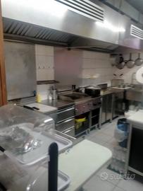 La cucina è attrezzata anche con friggitrice, piastra, fornelli e frigoriferi.