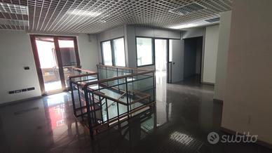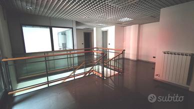 locale d'affari commerciale disposto su due livelli con 4 grandi vetrine ad angolo al pianoterra fronte strada. La proprietà era adibita per tanti anni a banca/istituto di credito. Attualmente il pianoterra si presta a zona commerciale adatta anche alla vendita al dettaglio, mentre il piano superiore raggiungibile con scala interna adibito ad uffici dispone anche di una entrata indipendente dal vano scale. Altezza soffitti al piano terra mt.3,70 e al primo piano mt. 2,70. Pavimentazione con ceramiche. Si dispone di servizi interni con un bagno al primo piano. Serramenti in alluminio di ottimo livello con porta d'uscita di sicurezza. Riscaldamento centralizzato