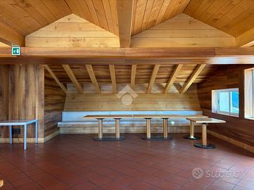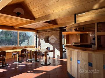 Al piano terra si trovano la zona bar-ristorante, un accogliente angolo con fogolar, la cucina professionale, una seconda sala da pranzo e una zona esterna ideale d'estate per pranzi o aperitivi. A rendere l'ambiente caratteristico e funzionale, è presente un forno a legna per la pizza, elemento di grande richiamo commerciale.