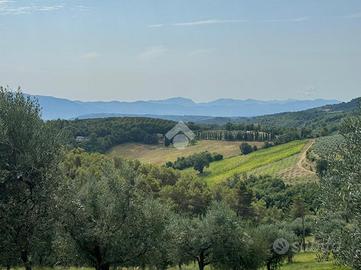 Nelle bellissime colline di Bevagna vi proponiamo un compendio immobiliare formato da diverse proprietà: -una casa singola di ca 200 mq degli anni 70 su due livelli composta da un rustico, un laboratorio e un magazzino al piano terra; una cucina, una sala, 3 camere e bagno al primo piano. -un rudere di ca 130 mq da recuperare totalmente -una rimessa di ca 200 mq -un fienile di ca 35 mq Completa la proprietà un terreno di 12 ha diviso tra 1 ha di bosco e la parte restante seminativa con 600 piantoni di ulivo e pozzo. Ideale anche per la creazione di un'azienda agricola visto che il terreno si presenta molto adatto alla viticoltura.
