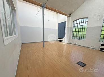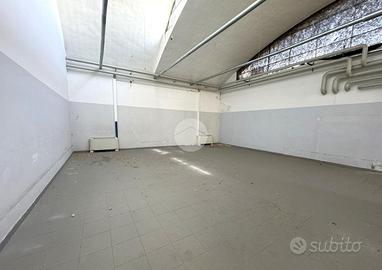 Il lotto è composto da un ampio ingresso che conduce alle due zone principali dello stabile: l'area fronte strada è attualmente suddivisa in quattro locali con ampie vetrine ed una parte dedicata ai servizi igienici. Sul lato opposto si sviluppa un lungo corridoio che disimpegna diversi locali adibiti ad uso ufficio, ulteriori servizi igienici ed un magazzino.